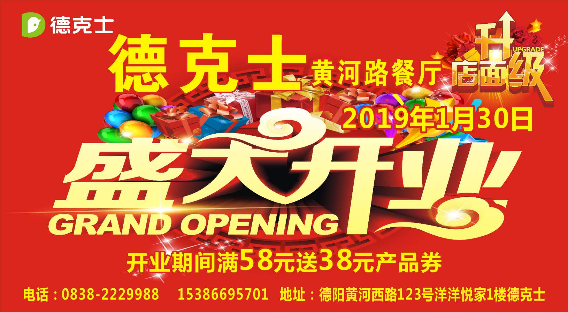 四川鐘鼎餐飲管理有限公司旗下德陽(yáng)洋洋悅家德克士店重裝升級(jí)開(kāi)業(yè)啦!